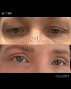 Lähetä selkeät kuvat sähköpostitse: contact@ckl.fi. Kun olet saanut vastauksen, voit varata leikkausajan soittamalla numeroon 0201 777 288. Leikkausaika tulee varata ja maksaa viimeistään 12.5.2026. Saat yläluomileikkauksen kampanjahintaan 1199 € (norm. 1690 €).